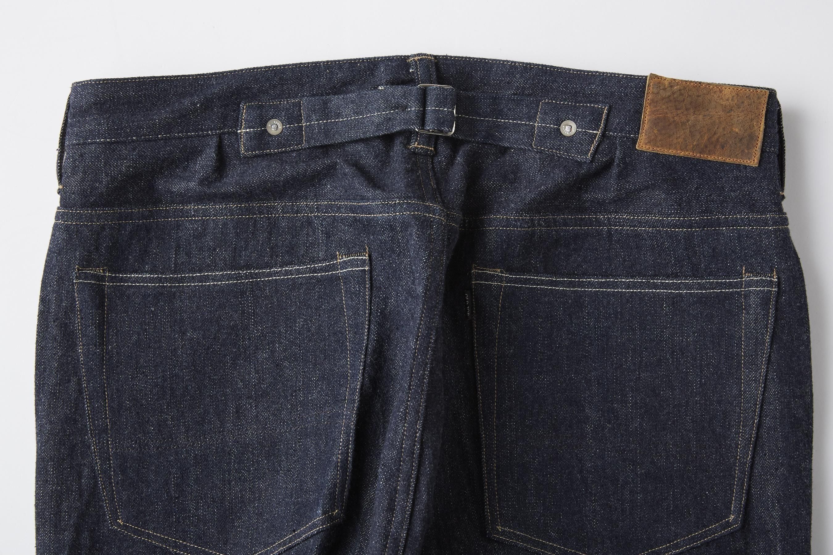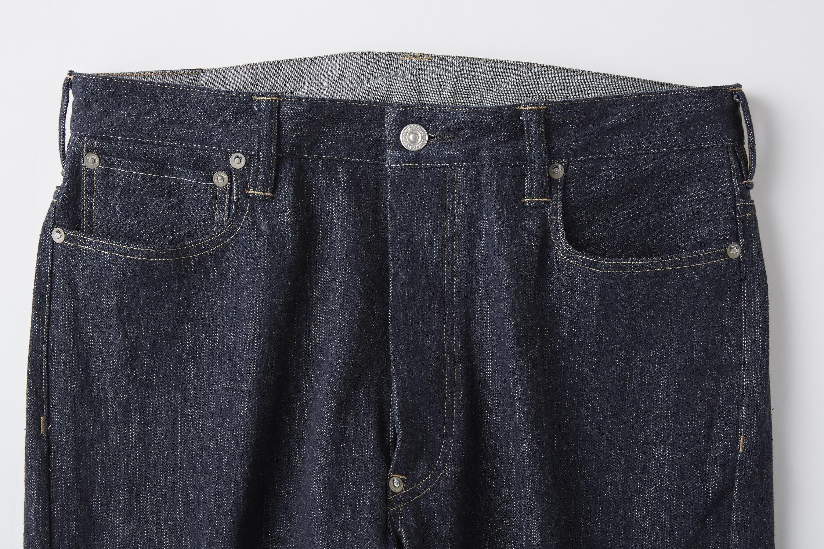 所謂なファイブポケットジーンズ、ポケットのバランスなどを微調整し、フィッティングラインに少しゆとりを持たせた緩めのストレートシルエット。