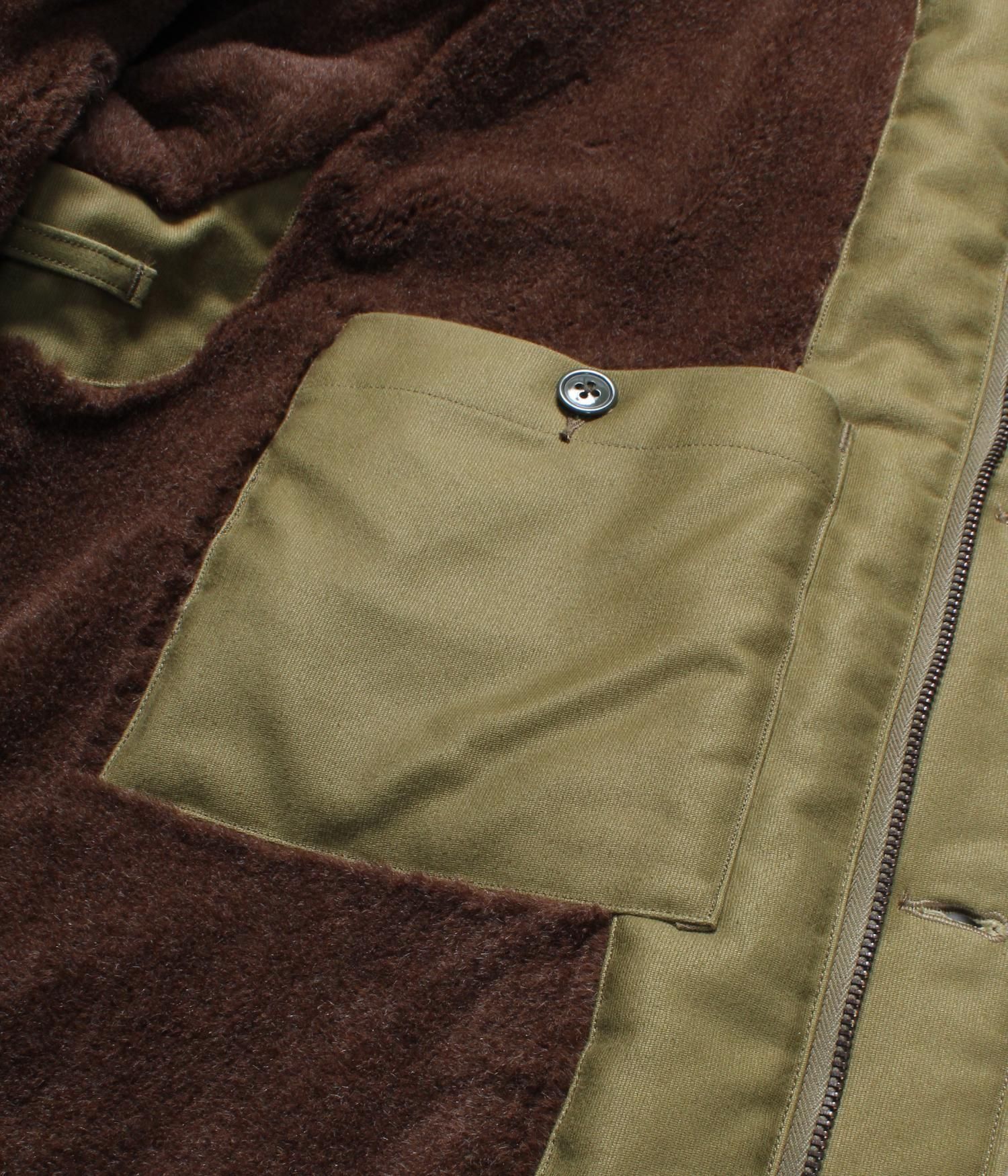 襟、身頃と袖の裏地にアルパカボアを使用したN-1デッキジャケット。